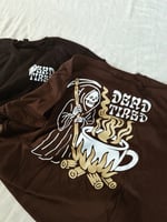 Dead Tired shirt, featuring original BrewSleepDraw artwork screen printed with care on comfy Black and Brown Gildan Softstyle tees.Shirts have a true to size fit.This preorder exclusive includes a left chest “Dead Tired” print and a bold grim reaper back print, perfect for late-night grinders, caffeine addicts, and anyone dead tired.Soft feel. Killer design. Limited run. Don’t sleep on it.